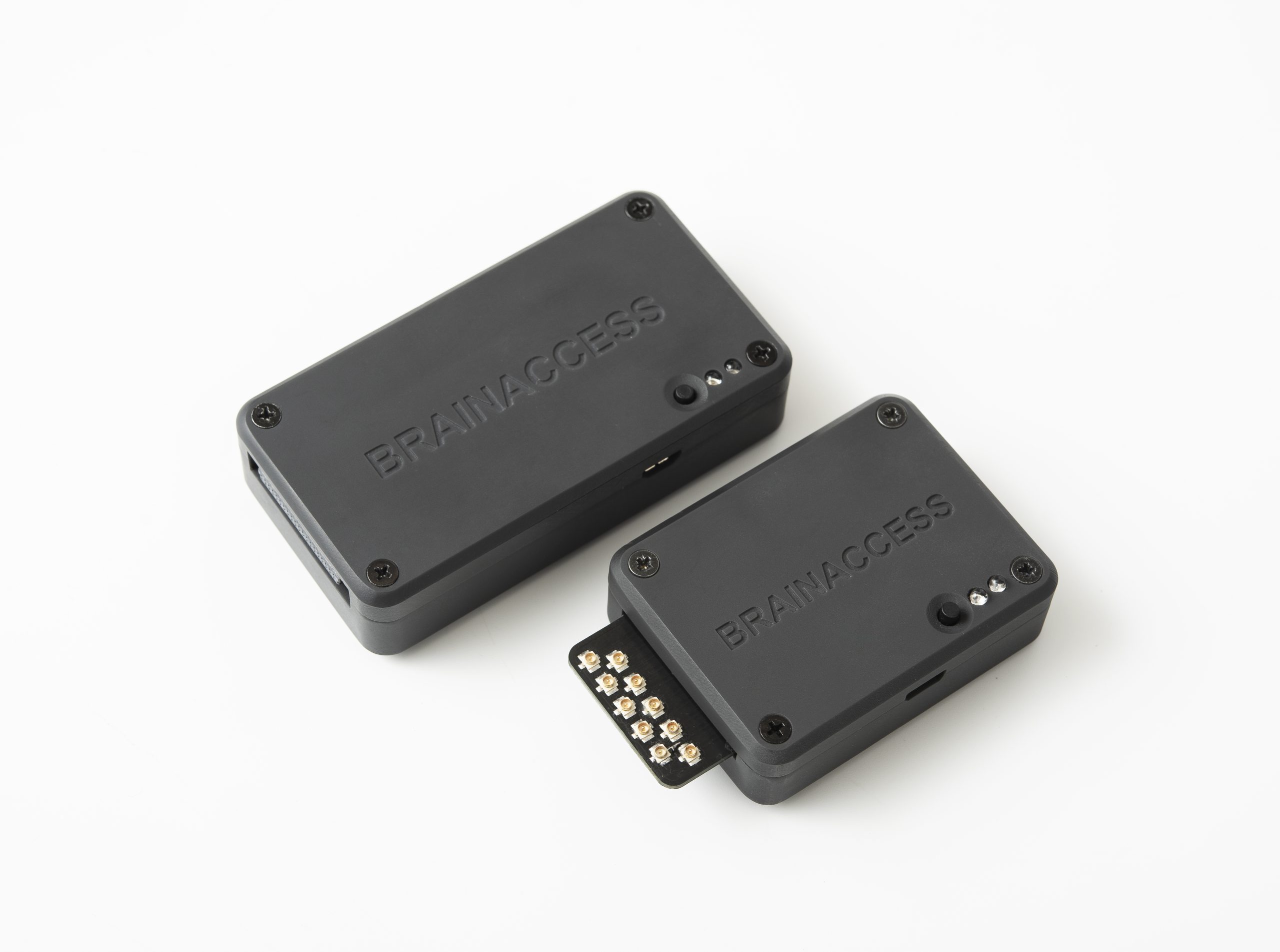 Neurotechnology’s gold-plated hard electrodes for robust performance and durability, or Datwyler SoftPulse® electrodes for more comfort during long sessions or specifically for sensitive users. Neurotechnology’s electrodes are included by default in all our BrainAccess Kits. SoftPulse® are available upon request.